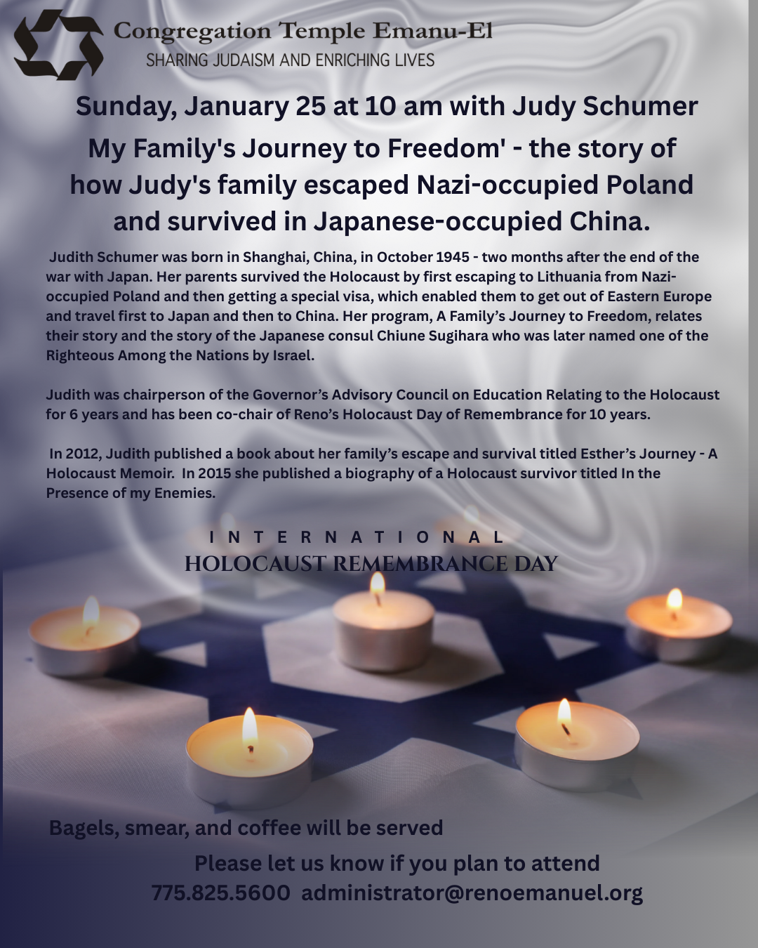 Shalom and welcome to Temple Emanu-El Congregation. We are Nevada’s first synagogue and Northern Nevada's only Conservative synagogue.